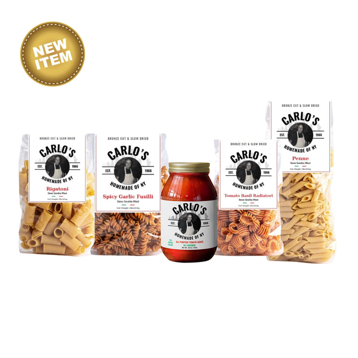 Penne Traditional, Spicy Garlic Fusilli, Tomato Basil Radiatori, Rigatoni Traditional |